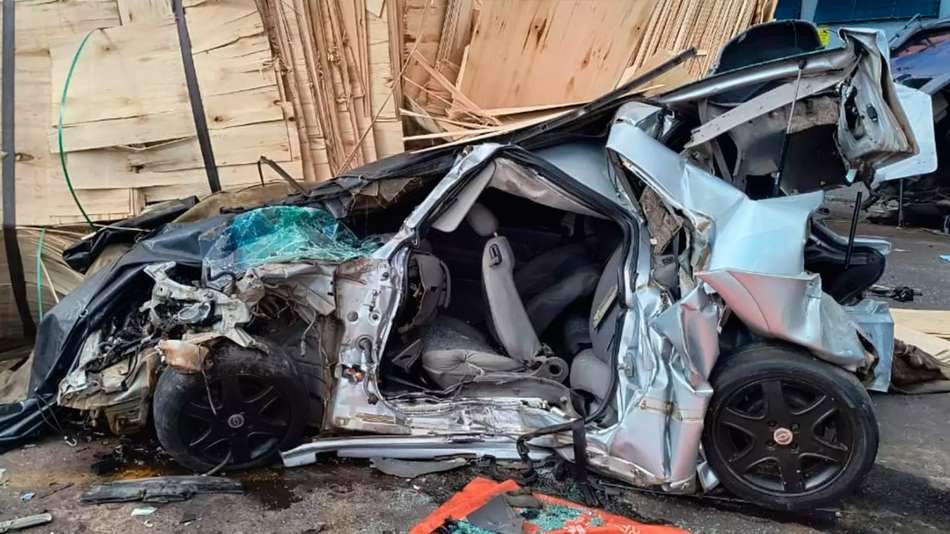 Homem grava vídeo no carro destruído após colisão com caminhão em SC