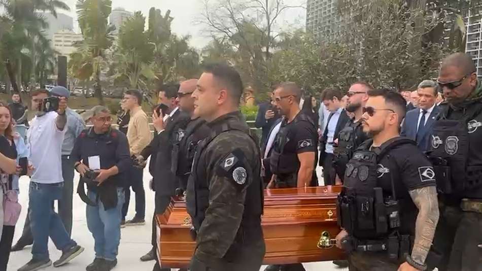 O velório aconteceu na manhã desta terça-feira, 16, na Assembleia Legislativa do Estado de São Paulo, na capital paulista. Em imagens, é possível ver a esposa do ex-delegado saindo da Alesp para acompanhar o corpo até o cemitério. Ruy Ferraz foi executado a tiros por criminosos na noite da última segunda-feira, 16, no litoral de SP. Guilherme Naldis/Redação Terra