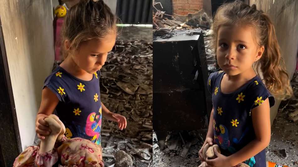 Mãe se emociona com reação da filha de 3 anos ao ver casa da família destruída por incêndio