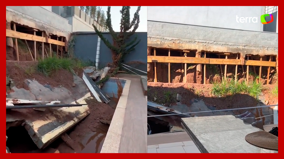 Morador que flagrou queda de muro em Alphaville mostra situação após 5 meses: 'Sonho destruído'. Samuel Borges viralizou em janeiro ao flagrar o momento em que o muro cede durante temporal. Depois de cinco meses, ele publicou vídeos onde mostra como está a situação do quintal. Nas imagens, o terreno aparece até com os entulhos deixados pelo acidente. 'A única coisa que foi feita foi o escoramento com madeira', afirma. Na época, ele disse que os problemas começaram após a construção da casa vizinha. Samuel disse aguardar uma decisão judicial sobre a responsabilidade pelo acidente.