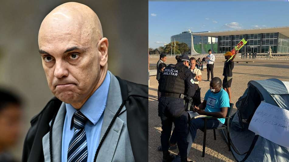 Moraes proíbe acampamentos na Praça dos Três Poderes após protesto de deputado aliado de Bolsonaro. O ministro do STF determinou na noite de sexta-feira, 25, que a polícia fosse usada para retirar deputados bolsonaristas acampados no local, próximo ao prédio da Corte. Moraes atendeu a um pedido da PGR para tomar a decisão e autorizou a prisão dos parlamentares, caso não aceitassem deixar a Praça dos Três Poderes. Após a ordem, o ministro complementou a decisão proibindo novos acampamentos num raio de 1 km da Esplanada dos Ministérios e de quartéis das Forças Armadas. Moraes justificou que adotava a medida para evitar um novo 8 de Janeiro; o ‘acampamento’ dos deputados começou na tarde de sexta-feira, 25. Hélio Lopes (PL-RJ) foi sozinho ao local, montou uma barraca e colocou esparadrapo na boca para protestar contra as medidas judiciais impostas ao ex-presidente Bolsonaro. Reprodução/depheliolopes/Instagram Reprodução/TV Justiça