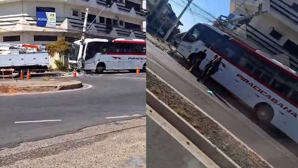 Motorista esquece freio de mão e ônibus atinge poste em Hortolândia