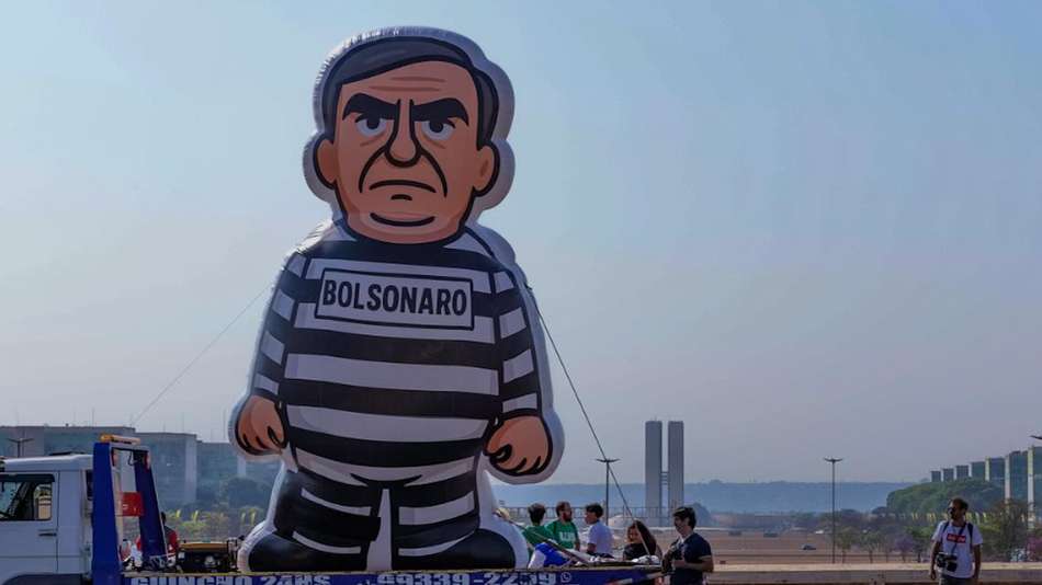 Movimentos estudantis levam ‘bonecão’ de Bolsonaro como presidiário para celebrar condenação no STF