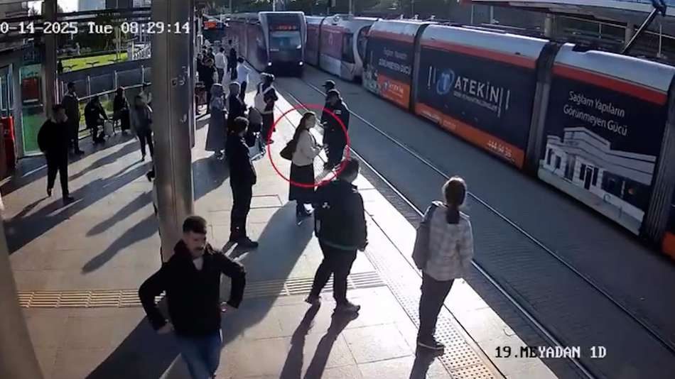 A cena foi registrada na manhã da última terça-feira, 14, em uma estação na cidade de Kayseri. A mulher estava com fones de ouvido na plataforma e decidiu atravessar a linha de trem sem olhar para o lado. No entanto, ela não notou que um trem passava pelo trilho no mesmo instante. Ela foi salva por um guarda que a puxou pelo braço rapidamente em direção à plataforma. Segundo autoridades, a passageira não se feriu e o trem conseguiu frear a tempo. Reprodução/@Hosirik29_61/X Imagem: Empresa de Transportes de Kayseri