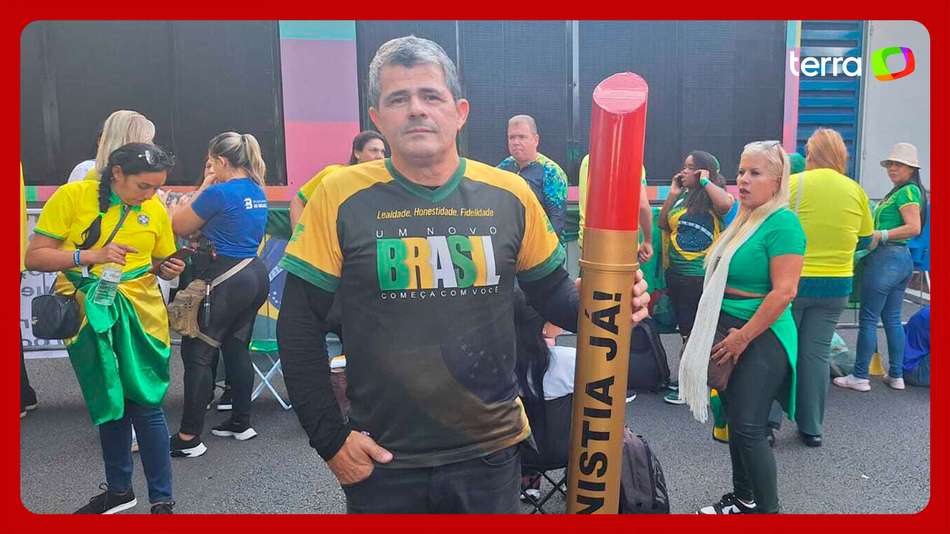 ‘O 8 de janeiro foi uma fatalidade’, diz bolsonarista com batom gigante por anistia em ato em SP. O mineiro José Caldeira conversou com o Terra neste domingo, 29, antes do início do ato convocado por Jair Bolsonaro na Avenida Paulista. Munido de um batom gigante feito com cano PVC com custo de cerca de R$ 30, o homem chamou o 8 de janeiro de “fatalidade” e que espera “proporcionalidade” nos julgamentos. O manifestante também comentou sobre uma possível prisão de Jair Bolsonaro, o que espera não ocorrer pois o ex-presidente “não teve um governo de corrupto”. Imagens: Maria Luiza Valeriano/Redação Terra