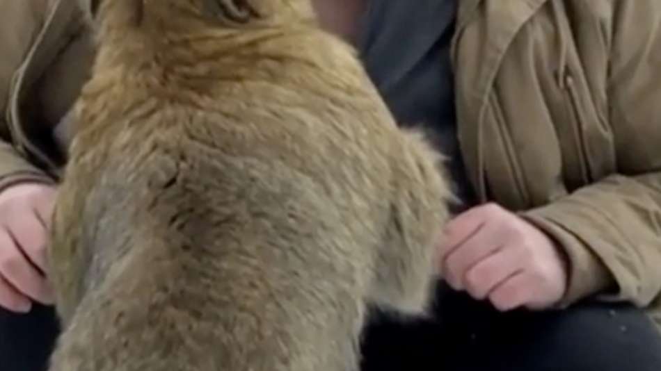O momento emocionante em que macaco observa cicatrizes de seu salvador