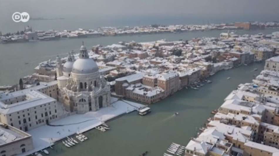 No inverno é possível que faça frio intenso em Veneza, mas é difícil que haja as condições meteorológicas propícias para nevar. A onda de frio siberiana continua ocasionando paisagens raras na Itália.