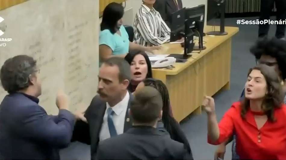 O momento ocorreu nesta quarta-feira, 29, na Câmara Municipal de São Paulo após a deputada Luna Zarattini (PT) pedir um minuto de silêncio pelas vítimas. Em seguida, os vereadores Lucas Pavanatto (PL) e Adrilles Jorge (União) não concordaram e pediram o silêncio apenas para os policiais mortos durante a operação. Em meio a gritos, os deputados pediam favoráveis ao silêncio pediam "silêncio para todas as vítimas" e os desfavoráveis afirmavam que não fariam "silêncio para bandido". Para resolver a questão, o presidente da Câmara, Ricardo Teixeira (União Brasil), colocou em votação o requerimento que foi rejeitado por não ter número suficiente de vereadores para votar. Reprodução/Câmara Municipal de São Paulo/Youtube