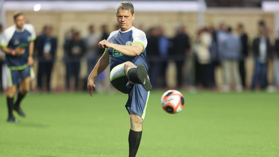 O governador de São Paulo participou, na noite desta terça-feira, 26, de uma partida de futebol com prefeitos de cerca de 150 municípios. Gilberto Kassab, que foi árbitro da partida, publicou vídeos do jogo em que é possível ver o prefeito de São Paulo, Ricardo Nunes (MDB) e o ex-jogador Cafu; Tarcísio marcou o pênalti que deu a vitória ao seu time, por 2 a 1. O evento ocorreu após a abertura do Congresso Estadual de Municípios, que teve a presença do ex-presidente Michel Temer. Imagem: Daniel Teixeira/Estadão Conteúdo Reprodução/@gilbertokassab_/Instagram