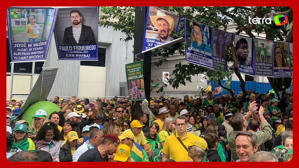 Bolsonaristas se aglomeram na Avenida Paulista antes de ato por anistia a envolvidos no 8/1. Apoiadores do ex-presidente Jair Bolsonaro já se reúnem na principal via de São Paulo para o evento, que ocorrerá a partir das 14h. Além da tradicional vestimenta nas cores verde e amarela, cartazes de ‘exilados’ e condenados pelos atos de 8 de janeiro podem ser vistos. Imagens: Sofia Pilagallo/Redação Terra