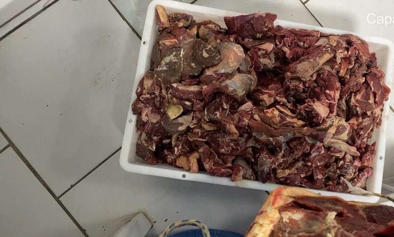 Durante a fiscalização, os agentes encontraram produtos sem procedência, sem selo de inspeção sanitária e armazenados de forma inadequada. As carnes apresentavam alterações no aspecto e odor, sendo consideradas inadequadas para o consumo humano.