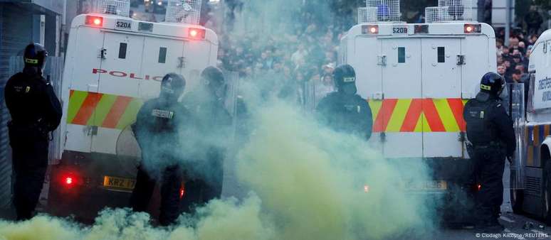 Na noite de sexta-feira, a polícia usou um canhão de água para conter a violência na cidade de Portadown, a oeste de Belfast. Os agentes foram atacados com bombas de gasolina, fogos de artifício e explosivos, informou a agência de notícias DPA. Mais de 60 policiais ficaram feridos até o momento.