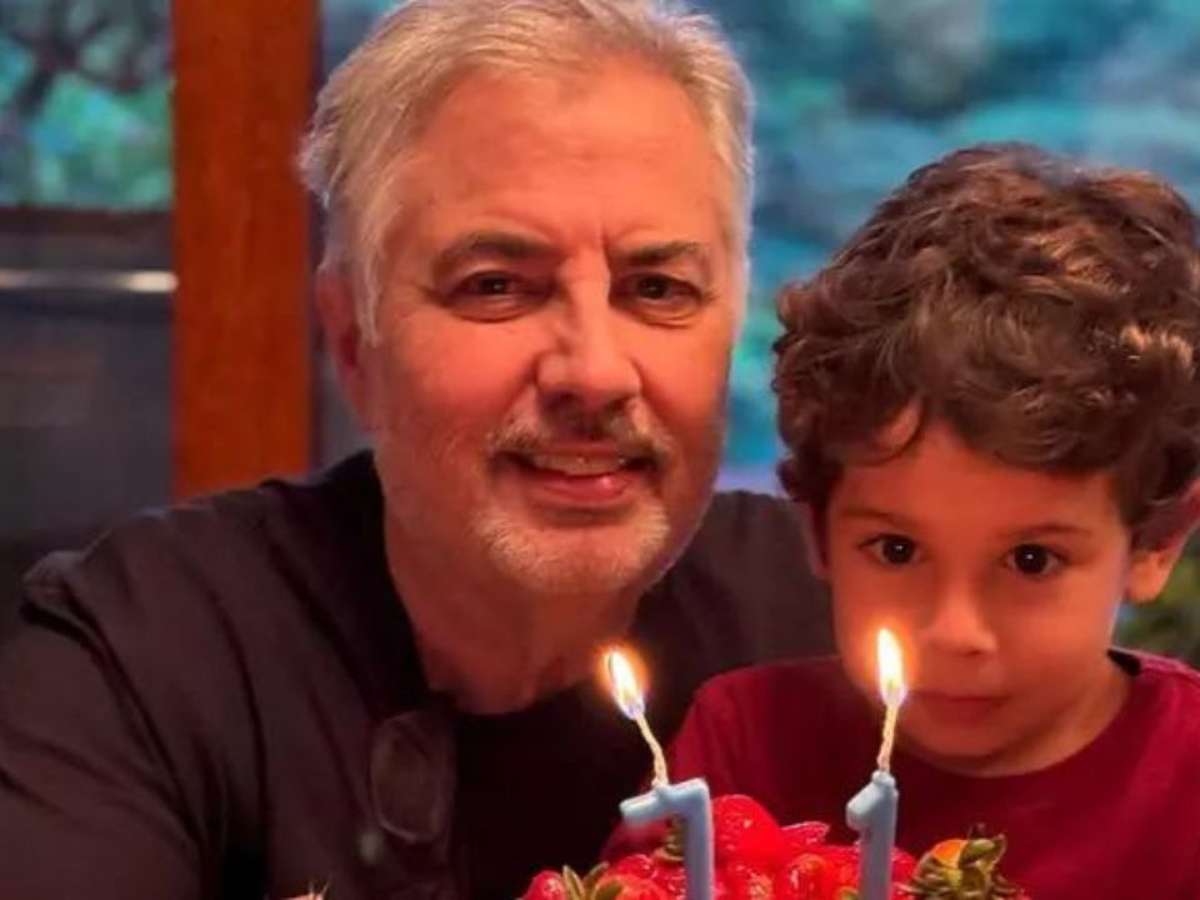 Nas imagens, podemos ver o aniversariante Roberto de Carvalho assoprando as velas do bolo, que indicam sua idade, 71 anos. Em seu colo, está seu neto, o pequeno Arthur, de 4 anos, filho de Antônio Lee. Roberto de Carvalho também é avô de Izabella, de 16, filha de Beto Lee. Antônio e Beto também são filhos de Rita Lee e Roberto de Carvalho.