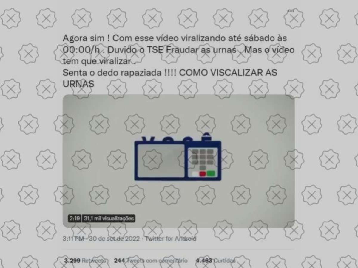 É falso que o TSE (Tribunal Superior Eleitoral) não testou a segurança das urnas para as eleições de 2022 ou que as vulnerabilidades encontradas no sistema em 2012 ainda não foram corrigidas, como afirmam postagens (veja aqui). A alegação enganosa se baseia em um vídeo gravado em 2014 em que Diego Aranha, professor assistente de segurança de sistemas na Universidade de Aarhus, na Dinamarca, anuncia o projeto Você Fiscal, mas os problemas citados por ele na gravação já foram sanados pela Justiça Eleitoral.