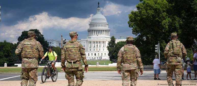 Moradores relatam uma forte presença federal, com veículos militares Humvee posicionados na Union Station, a principal estação de trem da capital americana, e tropas da Guarda Nacional em pontos importantes da cidade.