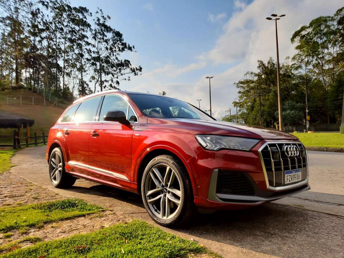 Rodamos durante alguns dias com o novo Audi Q7, que chegou ao Brasil durante a pandemia de coronavírus, na metade do ano passado. O carro é enorme, mede 5,063 m de comprimento e tem 2,994 m de distância entre-eixos. Há espaço de sobra. Claro que, por ser um SUV, ele não é exatamente baixo: tem 1,771 m de altura. Também tem potência de sobra, mas não é exatamente prático. Com 2,212 m de largura e pesando 2.275 kg, o novo Audi Q7 exige atenção nas manobras e revela seu peso ao rodar.