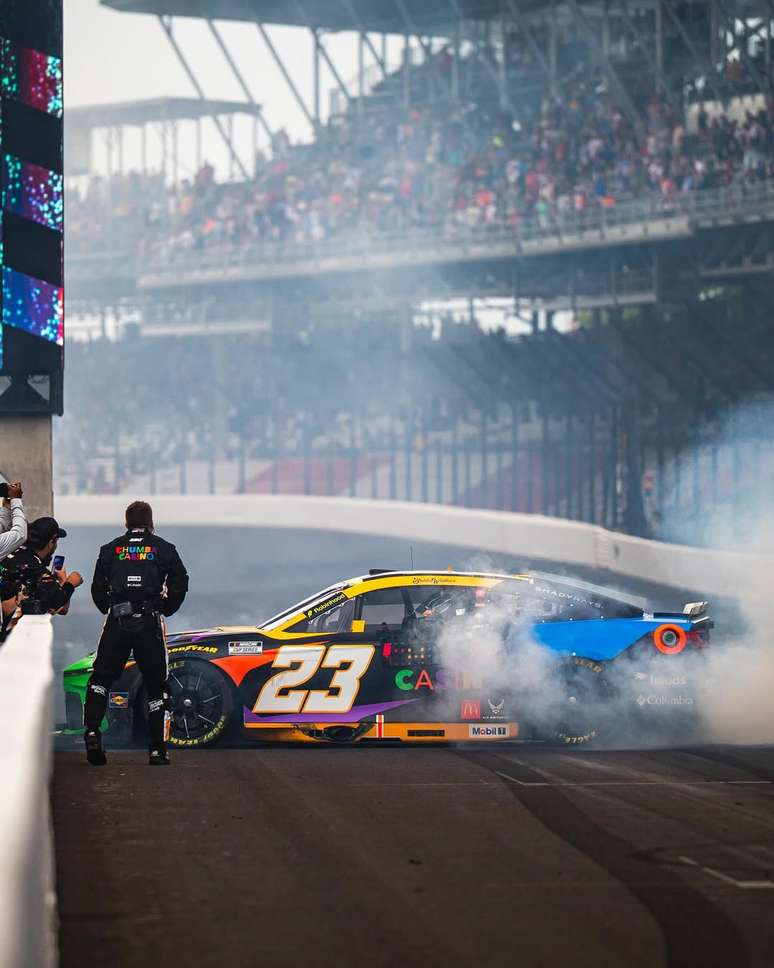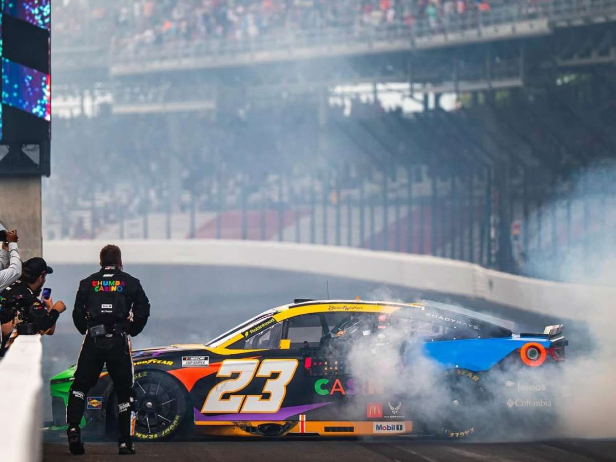 Piloto da 23XI Racing supera chuva, relargadas e risco de pane seca para vencer em Indianápolis e garantir vaga nos playoffs da NASCAR.