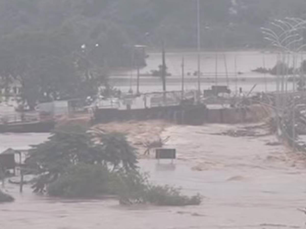 Um vídeo capturou o momento em que a embarcação colide com a ponte na BR-386. O acidente ocorreu durante a cheia do Rio Taquari, que atingiu um nível acima de 30 metros devido às chuvas intensas que assolam o estado desde segunda-feira, 29.