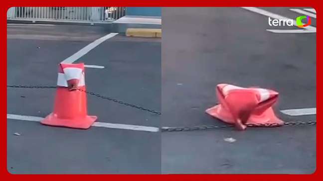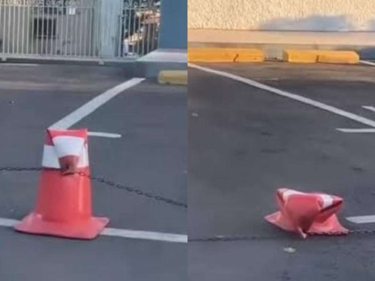 Os cones ficaram durante três dias sobre o asfalto quente, no estacionamento de uma unidade municipal. As imagens foram registradas por um homem que passava pelo local e viralizaram nas redes sociais.