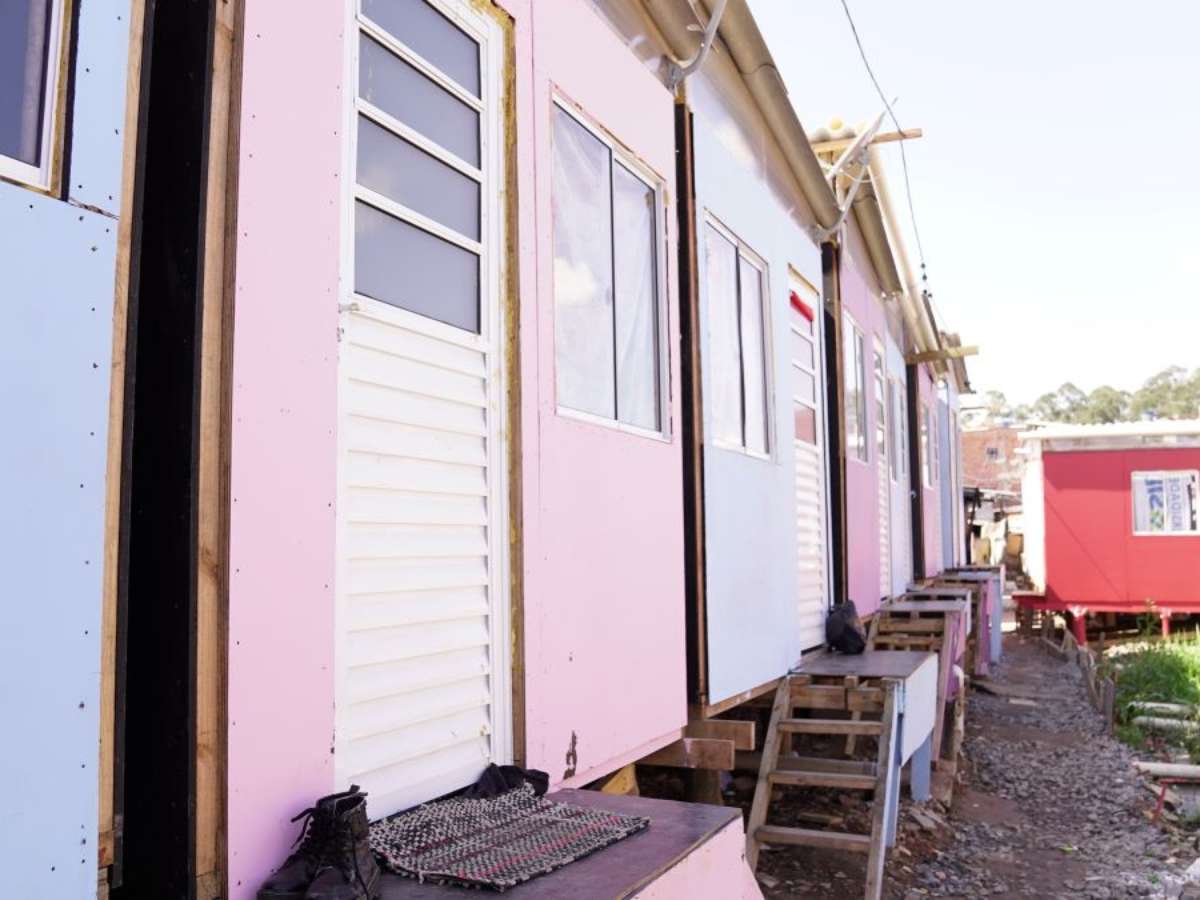 As paredes são feitas de painéis de madeira preparados para oferecer conforto térmico, e alguns telhados são feitos de material reciclado. “O banheiro é a grande melhoria: tem chuveiro quente e vaso sanitário. As famílias usavam baldes e tinham vergonha de receber visitas em casa”, descreve Jordan.
