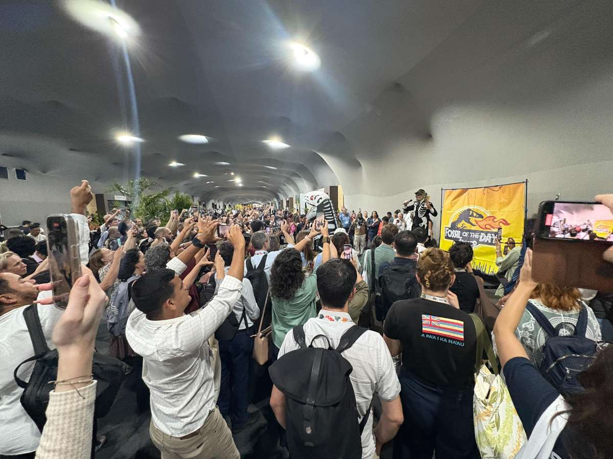 Com dinossauro inflável, clima de circo e público empenhado, antiprêmio ‘Fóssil do Dia’ vai para o Japão no 4º da COP30