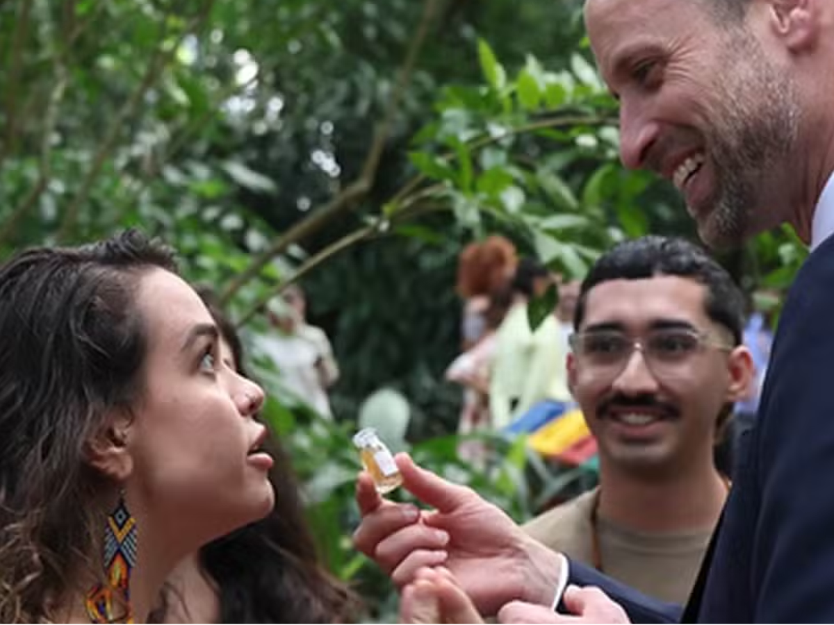 Durante uma visita ao Museu Goeldi, em Belém, o príncipe William recebeu um frasco de banho de cheiro da fundadora do Instituto COJOVEM, Karla Braga, que aproveitou a oportunidade para destacar a necessidade de investimentos nas juventudes da Amazônia e seu papel crucial no enfrentamento da crise climática.