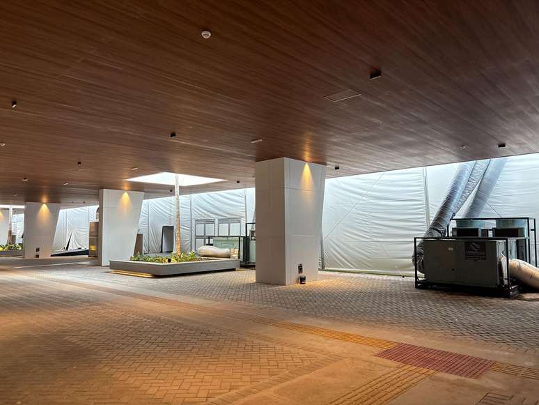 Ainda falando sobre barulho, caso chova durante a COP30, como está previsto, essa pode ser uma questão. Isso porque nesta sexta choveu por alguns minutos e já foi suficiente para o barulho das gotas caindo na lona ter sido notado de forma considerável, passando a impressão de ter ocorrido uma chuva mais forte do que realmente aconteceu.