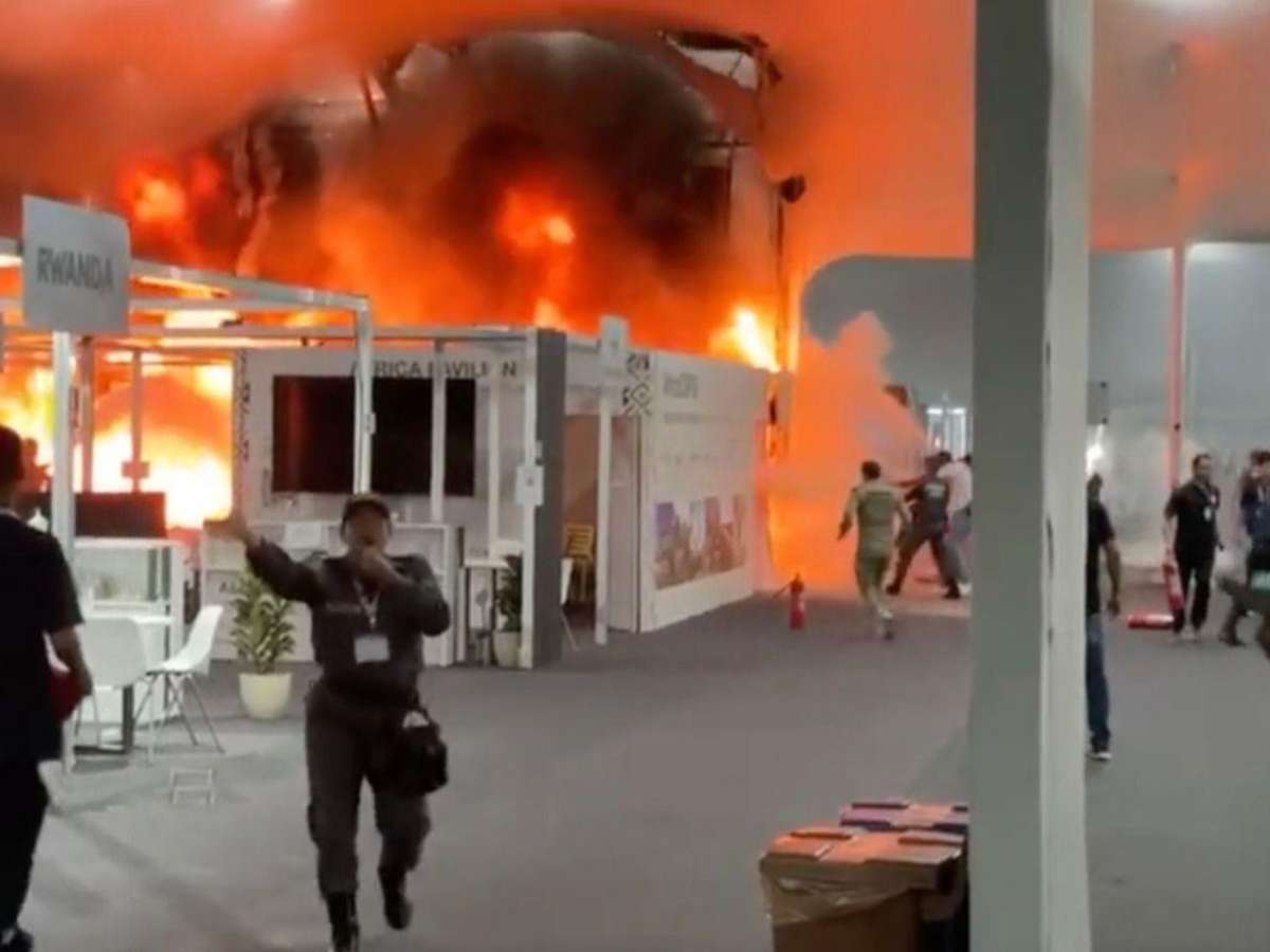 A BBC publicou um vídeo, feito pelo editor de Clima Justin Rowlatt, que mostra as chamas e uma coluna de fumaça tomando conta dos pavilhões. O veículo britânico lembrou que o incêndio aconteceu enquanto cerca de 200 países tentam chegar a um acordo sobre o clima.