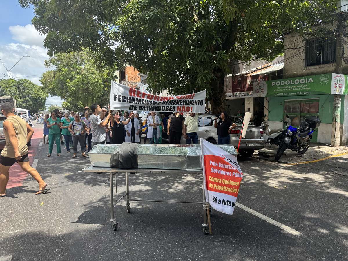 Os manifestantes levaram um caixão até a entrada do prédio, em sinal de luto, e chegaram a interditar parcialmente a avenida em frente ao hospital. Durante o ato, também prestaram homenagem a um paciente que teve os órgãos doados pela família, gesto usado para destacar a importância dos serviços realizados no hospital.