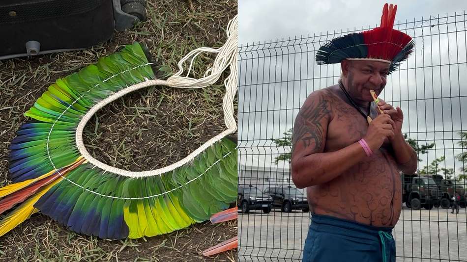 Garapira Pataxo conversou com a reportagem do Terra nesta quinta-feira, 13, em Belém. Ele e demais indígenas marcaram presença na porta da Zona Azul, área restrita da COP30O homem explicou as reivindicações que pleiteiam durante o evento na capital do Pará. No local, ele vende itens que representam sabedorias milenares dos povos originários. Beatriz Araujo/Terra *A repórter viajou a Belém com apoio do ClimaInfo.