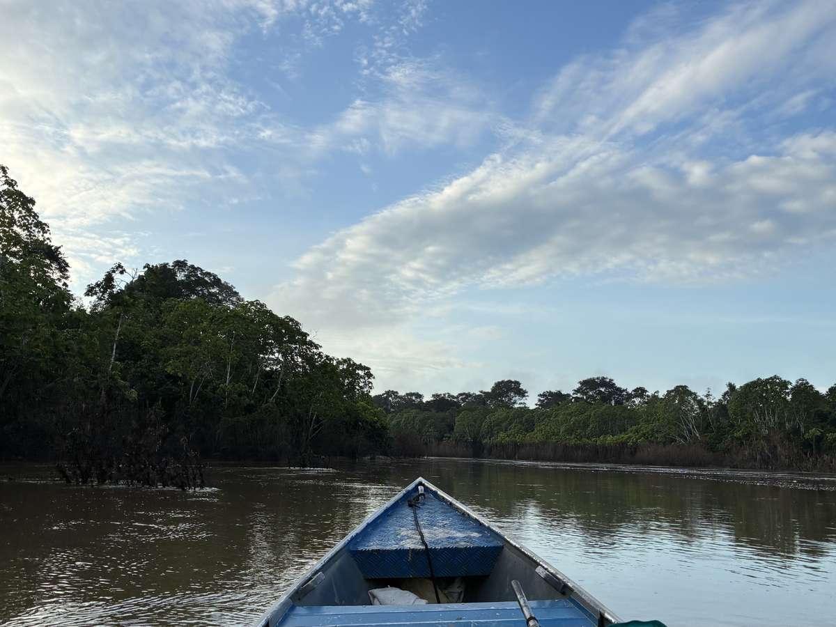 Deixamos o local por volta das 6h e seguimos pelo Rio Caeté, cheio de curvas ao som dos pássaros e bichos da floresta. O caminho parecia cena de filme. Ora estreito, ora largo. Árvores por todos os lados. O som que ecoa da floresta se mistura com o barulho do motor ao mesmo tempo em que o sol ilumina as árvores como quem dá bom dia. Com esse cenário, fica muito difícil não romantizar a grandiosidade da maior floresta tropical do mundo e, ao mesmo tempo, se gabar do privilégio que é estar no meio dela às 6 horas da manhã de uma terça-feira qualquer.