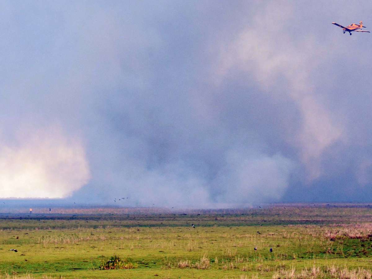 Segundo estimativas do Instituto Chico Mendes, 2 mil hectares da Estação Ecológica do Taim, no sul do Rio Grande do Sul, foram atingidas pelo incêndio