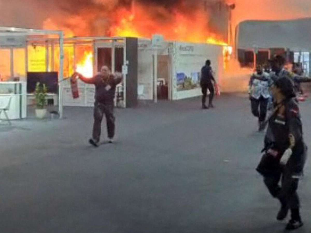 Em meio a um grande contingente de bombeiros e equipes de segurança, o fogo obrigou a evacuar as pessoas que circulavam pelos pavilhões, levando à suspensão das atividades.