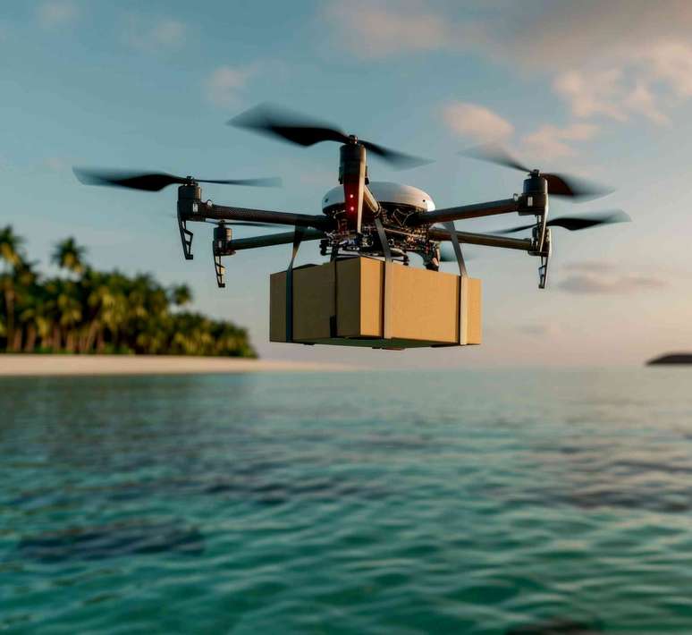 Representação de um drone de entregas. Imagem do Freepik, gerada por IA., CC BY