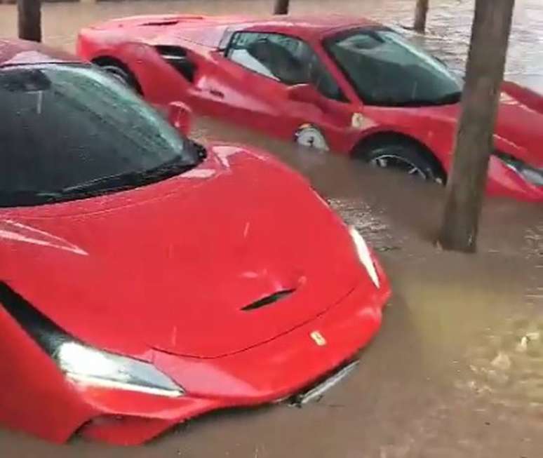 Aos menos sete Ferraris ficaram ilhadas durante as fortes chuvas que alagaram o estacionamento de uma pousada na cidade de Urubici, na Serra de Santa Catarina, neste sábado, 7. Vídeos que circulam nas redes sociais mostram os veículos de luxo com água até a altura da porta, enquanto um outro automóvel da marca é puxado por um trator.