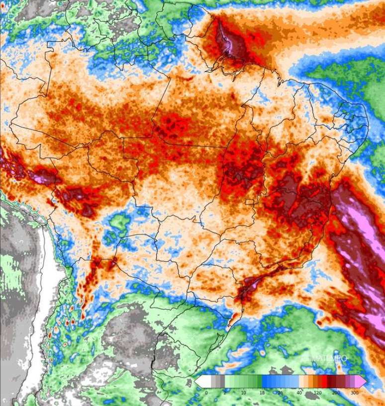 "Desta vez, a ZCAS tem atuação novamente mais ao norte de sua posição climatológica, influenciando alguns Estados da costa norte brasileira. Porém, não teremos um padrão de tempo seco nos Estados mais ao Sul do País", alerta.