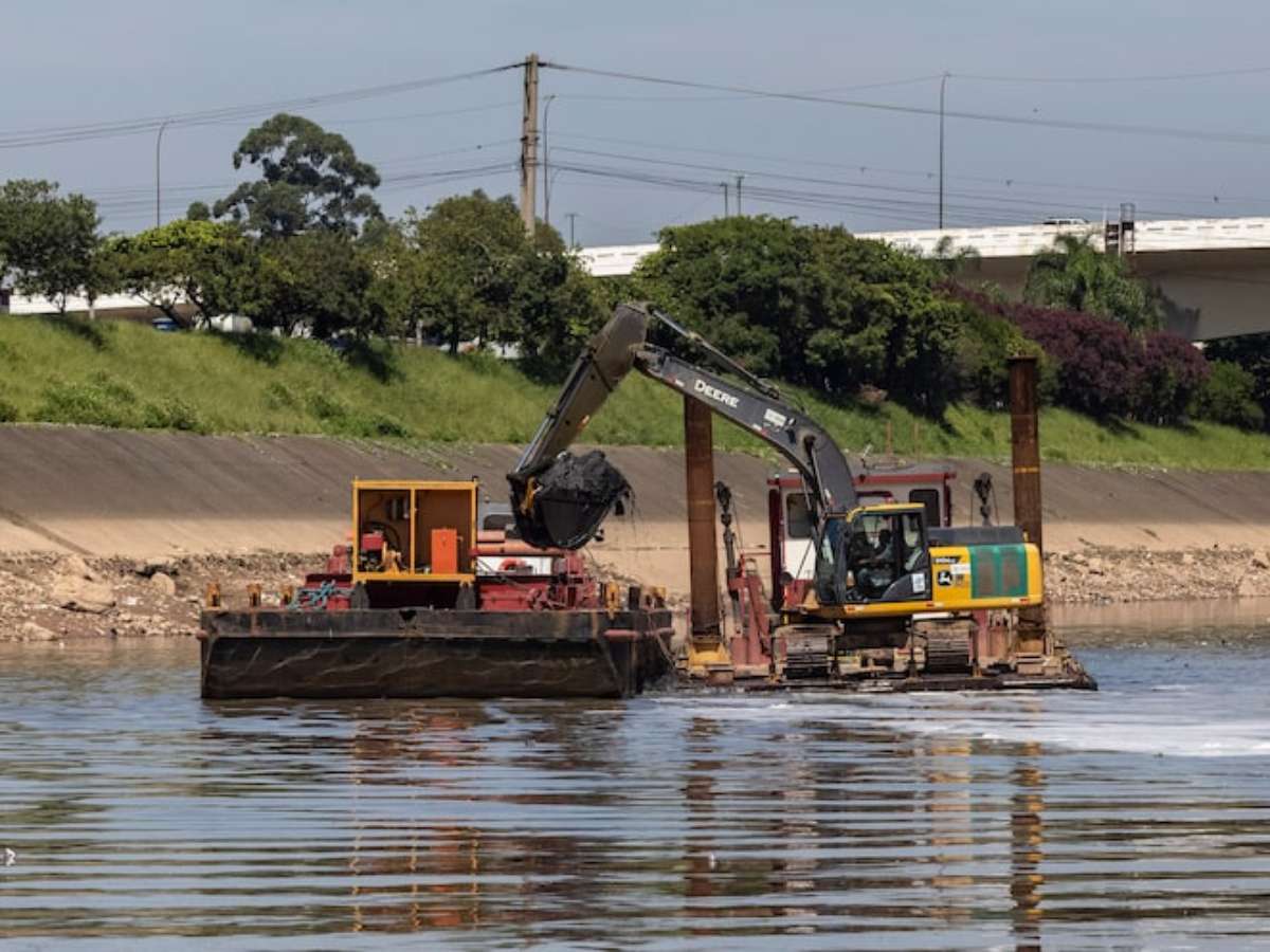 A gente vai acelerar essa retirada ao longo deste ano no Tietê e Pinheiros: No Pinheiros, a gente já está com (a retirada de) 700.000 m³ de sedimentos contratada. No Tietê, além dos que estamos dando continuidade, a gente vai começar agora o lote 3, perto de Suzano, também com recurso do BID (Banco Interamericano de Desenvolvimento), retirando mais de 200.000 m³.