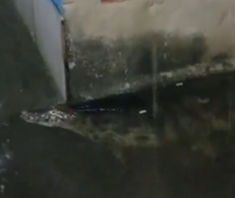 As chuvas fortes que atingiram a zona oeste do Rio de Janeiro, na quarta-feira, 3, provocaram uma cena inusitada. Uma mulher registrou o momento em que um jacaré aparece em sua residência em Realengo, nadando em meio ao alagamento provocado pelo temporal.