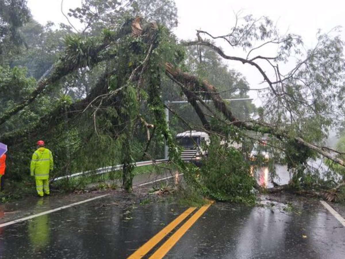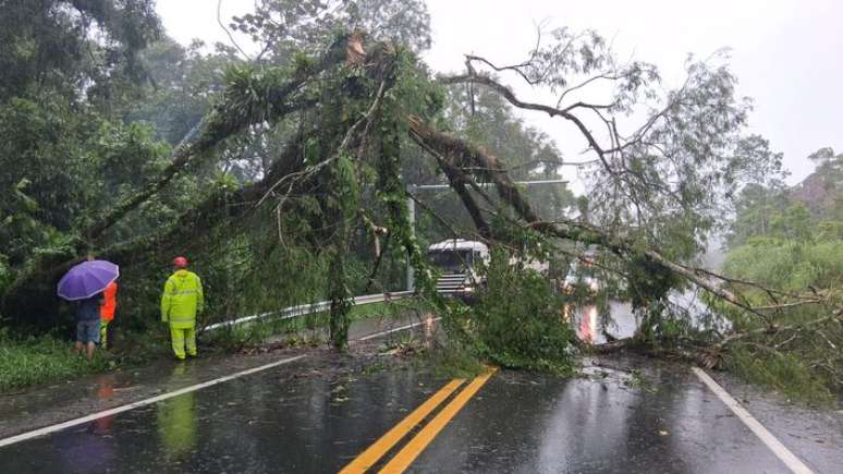 No litoral, onde os volumes de chuva chegaram a ultrapassar os 100 milímetros em cidades como Peruíbe (171 mm), Itanhaém (156 mm), Praia Grande (108 mm), São Vicente (105 mm) e Bertioga (102 mm), a queda de uma árvore na Rodovia Manoel da Nóbrega (SP-055), na altura de Itariri, provocou a interdição da pista. Antes das 18h, a rodovia já havia sido liberada.