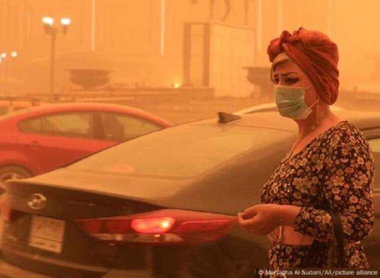 Tempestade de areia em Bagdá: uso de máscara é fundamental para filtrar o ar
