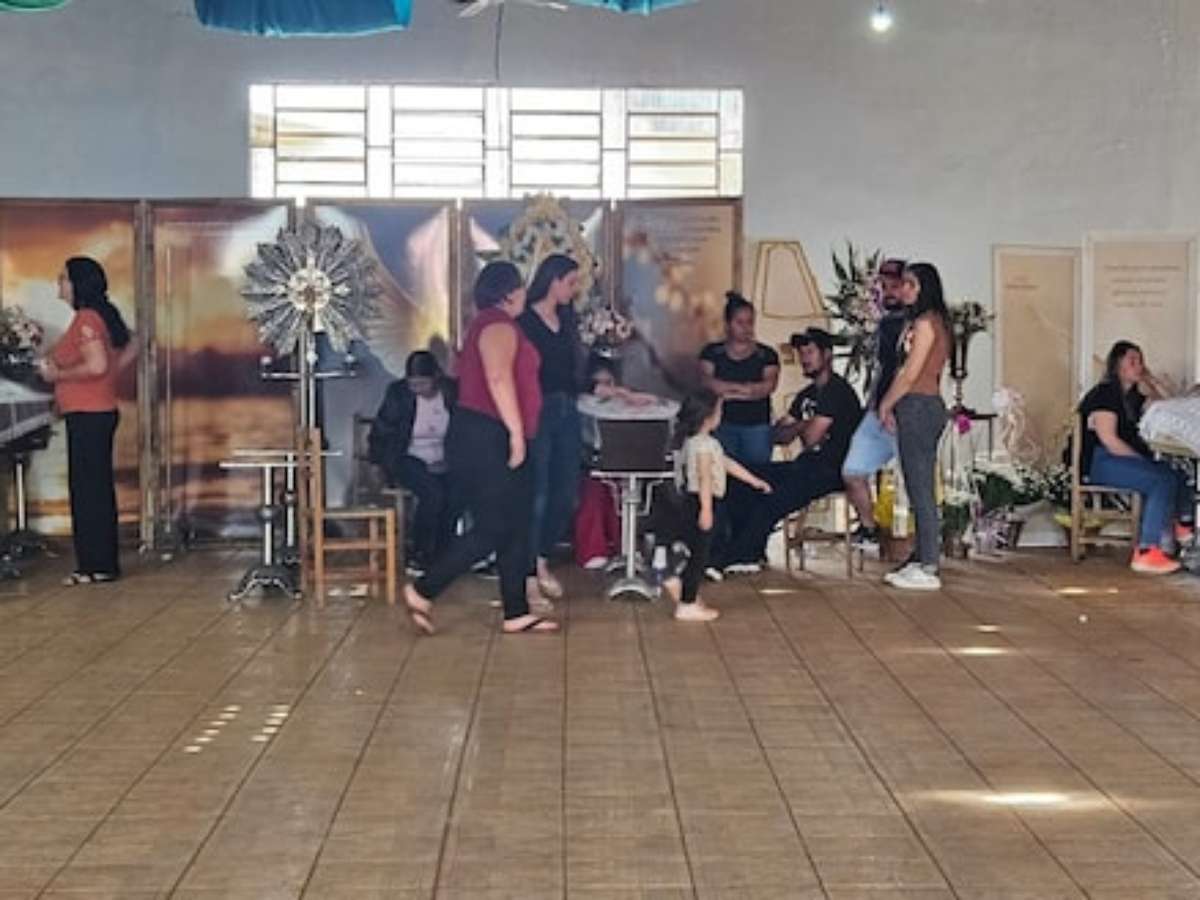 Salão paroquial abriu a despedida a 4 dos 5 moradores da cidade atingidos pela tragédia, entre os quais Júlia Kwapis, jovem de 14 anos que estava na casa de um amiga e seria crismada neste fim de semana