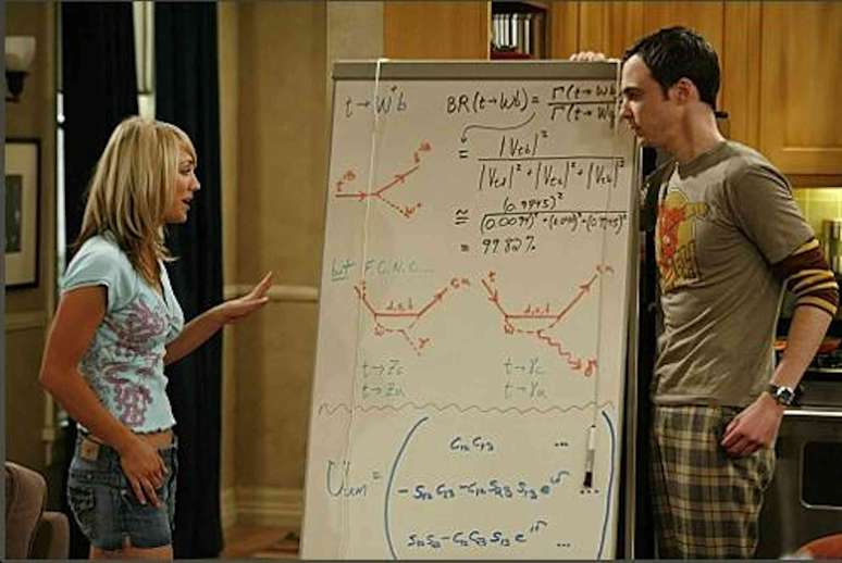 Sheldon Cooper explicando a Penny seu quadro negro na série The Big Bang Theory CBS, CC BY