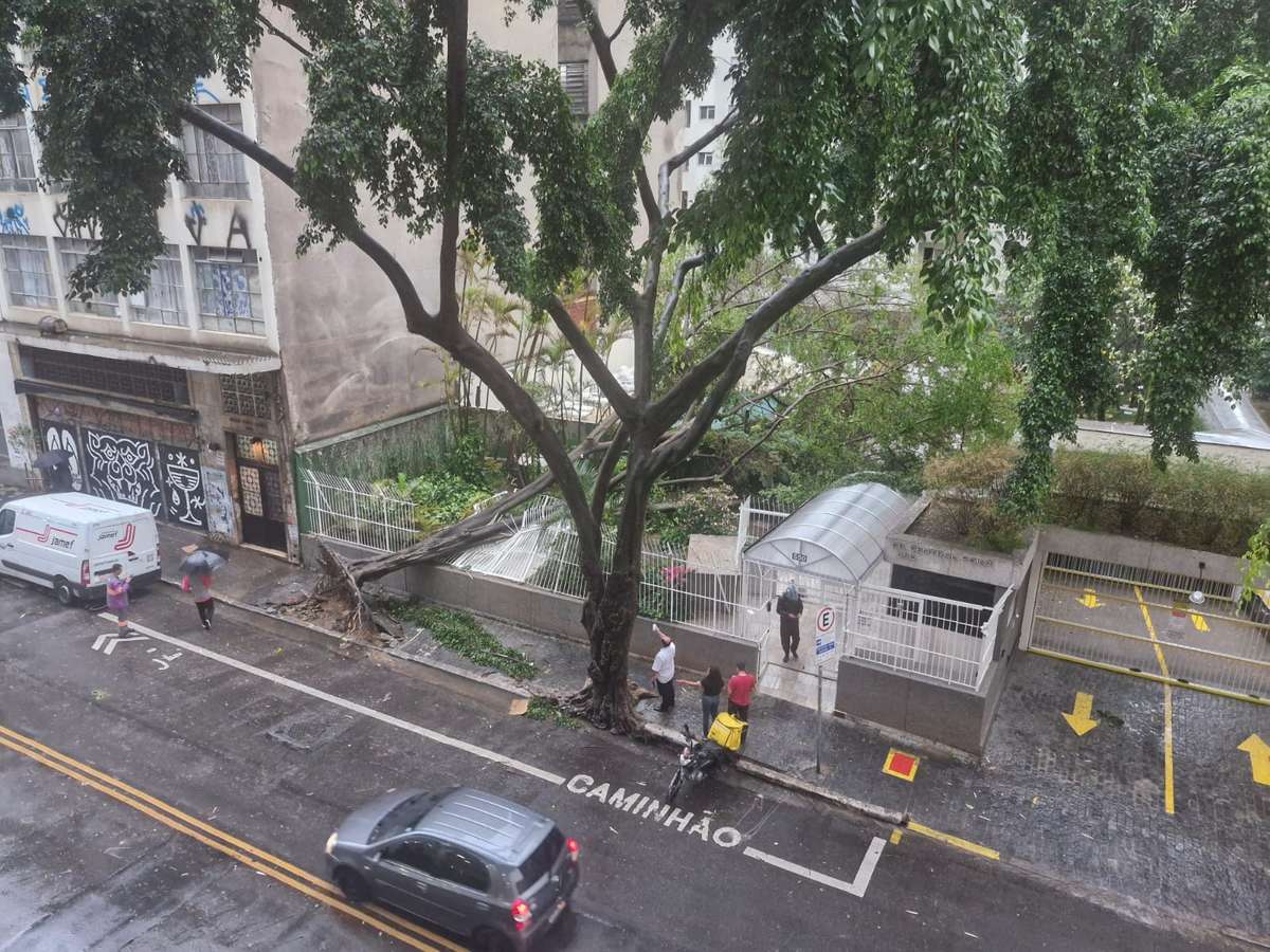 Temporal derruba árvore dentro de prédio no bairro Bela Vista, em São Paulo;