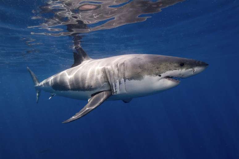 O grande tubarão-branco é uma obra-prima da engenharia evolutiva. Esses belos predadores deslizam sem esforço pela água, cada movimento lento e deliberado de sua poderosa cauda impulsionando um corpo especializado em furtividade, velocidade e eficiência. Visto de cima, seu dorso escuro se confunde com as águas azuis profundas, enquanto, visto de baixo, seu ventre claro desaparece na superfície iluminada pelo Sol.