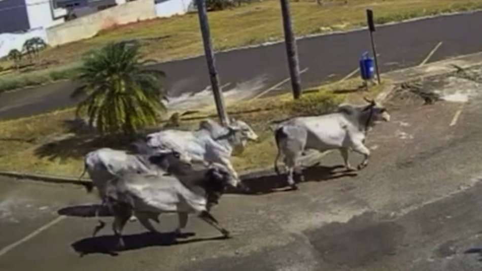 O caso ocorreu na última sexta-feira, 12, em Araguari, no Triângulo Mineiro. Câmeras de segurança registraram os animais correndo pelas ruas da cidade. De acordo com a PM, os bois escaparam na hora do desembarque no frigorífico, mas já foram recuperados.