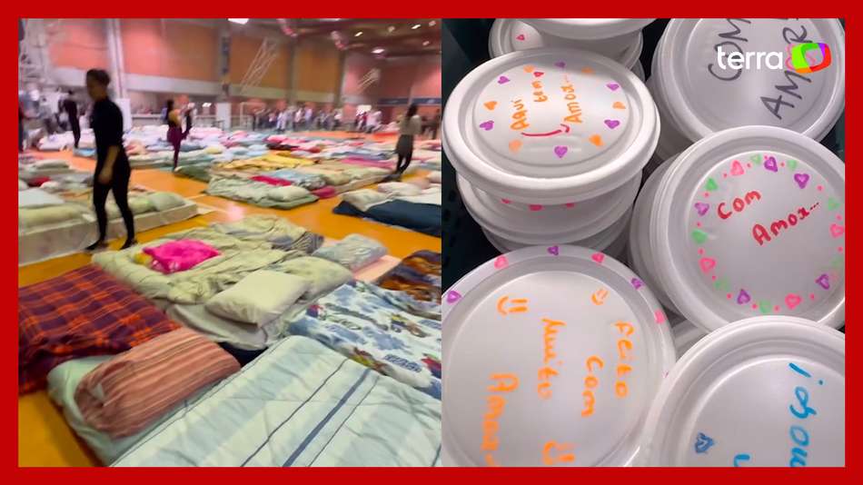 Jovem mostra rotina como voluntária em abrigo no Rio Grande do Sul. Taís Martins fez os posts com o objetivo de mostrar como está funcionando o trabalho. A jovem tem atuado em um abrigo montado no campus da PUC-RS, em Porto Alegre. Na gravação, ela mostra que as doações que chegam são organizadas por itens. Livros, alimentos, roupas, sapatos: tudo é separado e entregue às vítimas das chuvas. As marmitas doadas, inclusive, têm recados carinhosos para os gaúchos atingidos. Taís também pede que as doações continuem: "Não parem de nos ajudar", disse. Reprodução/taissmartinss/Instagram