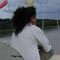 frente no navio, a brasileira Alice Nogueira Novaes faz seu