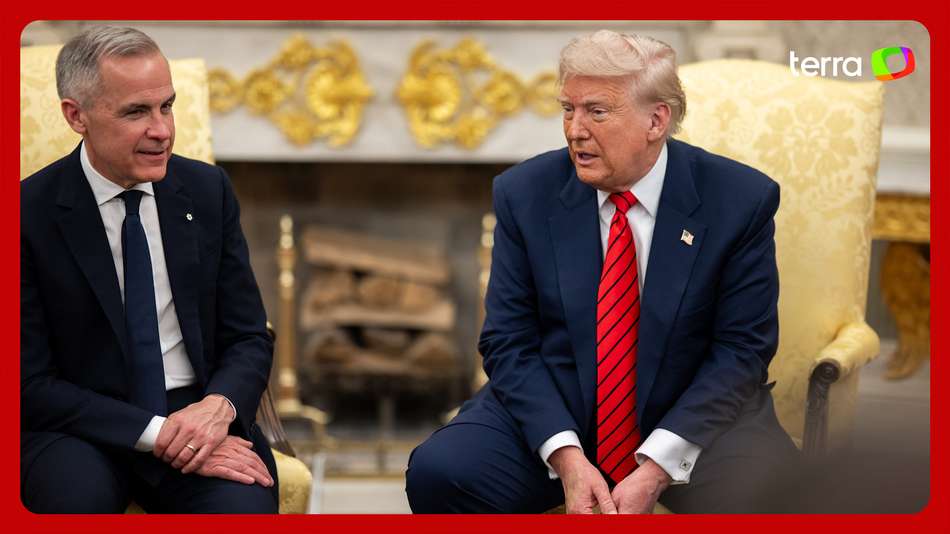 Mark Carney se reuniu com o presidente dos EUA nesta terça-feira, 6, na Casa Branca. O primeiro-ministro afirmou que o Canadá nunca estaria à venda. A fala fez menção à uma ponderação de Trump de que as "linhas imaginárias" da fronteira entre os dois países poderiam ser apagadas. O republicano retrucou o premiê e afirmou: "Nunca diga nunca". Apesar do comentário, o encontro entre as duas autoridades teve um tom amigável. Reprodução/X/@whitehouse