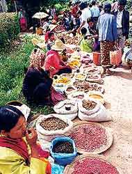 Das esturricadas planícies centrais burmesas, partimos em direção às montanhas de Kalaw, antigo refúgio alpino dos oficiais ingleses na época do domínio britânico no subcontinente indiano. A vila serviria como ponto de apoio para um interessante trekking que eu planejava realizar pelas cordilheiras da província de Shan. Historicamente, aquela região de relevo acidentado transformara-se em ponto de passagem para incontáveis grupos étnicos que transitavam entre a planície do Rio Ganges e o sudeste da Ásia. Percebi, depois de algumas horas de caminhada, que aquele trekking seria, na verdade, o que chamo de ‘aventura antropológica’. À medida que invadíamos o coração da cordilheira, deparávamo-nos com as mais variadas etnias, diferentes entre si tanto nas feições como nas línguas que falavam e nas roupas que vestiam. Extensas plantações de chá e tabaco ocupavam as encostas das montanhas. Estávamos na época da colheita e centenas de mulheres carregando gordas cestas de vime espalhavam-se pelos campos para colher a preciosa safra anual.