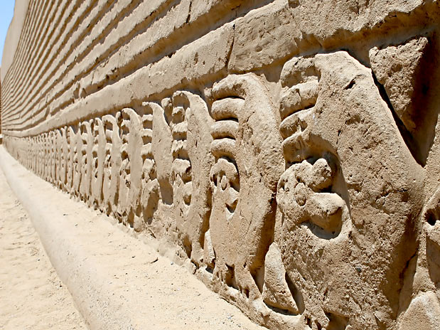 Situado ao norte da cidade de Trujillo, a cerca de 600 km de Lima, o sitio arqueológico de Chan Chan foi construído entre 850 e 1470 d.C. Esta cidade imperial da civilização dos Chimú foi conquistada pelo Império Inca no século 15. A antiga cidade era dividida em 10 partes retangulares, todas cercadas por muros e chamadas de Cidadelas. As paredes chegam a 10 metros de altura.